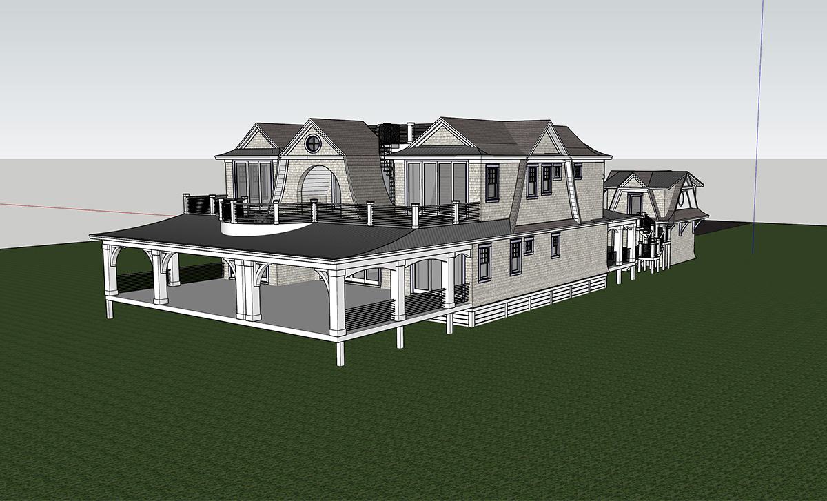 The main residence features five ensuite bedrooms, centered around a gracious foyer that opens to a light-filled living space and expansive porches overlooking the Atlantic. The reverse floor plan showcases sweeping ocean views from the upper level, where an open-concept living and dining area flows seamlessly into a chef’s kitchen with professional-grade appliances, an oversized island, and a butler’s pantry designed for entertaining.